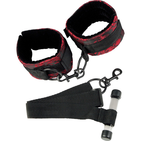 Entregarte a los sentidos y ceder al deseo no te costará nada con esta hermosa colección restricciones de la colección Scandal. Exquisitamente diseñado en brocado rojo y negro con anillos de calidad superior y broches, Scandal lleva el bondega a un nuevo nivel.